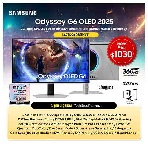 Sasmung Odyssey G6 OLED Monitor 27 inch 2.5K QHD (360Hz) Curved 16:9 OLED Panel 0.03ms HDR10+ Gaming 360Hz Refresh Rate 0.03ms Response FreeSync Premium Pro