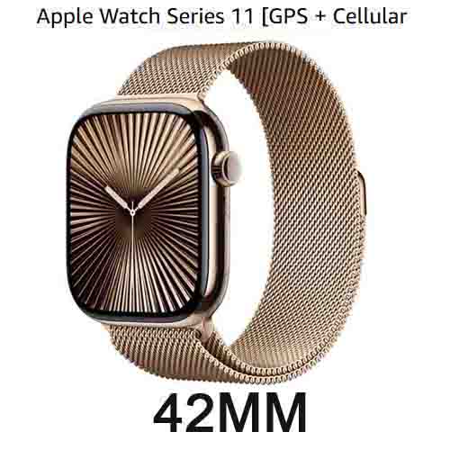 Apple Watch Series 11 [GPS + Cellular 42mm] Smartwatch with Gold Titanium Case