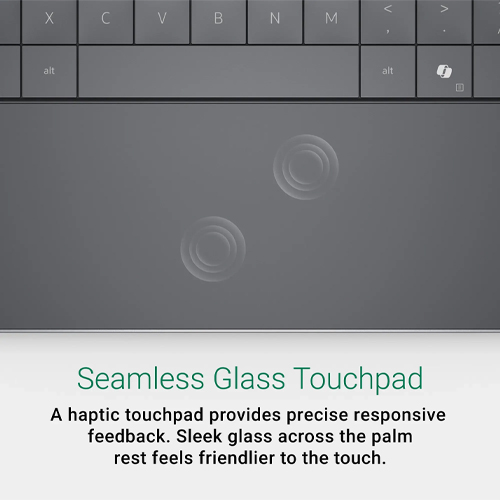 A haptic touchpad provides precise responsive feedback. Sleek glass across the palm rest feels friendlier to the touch.